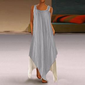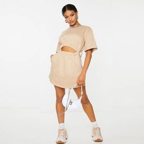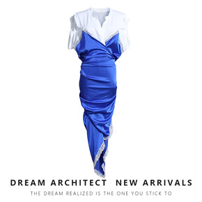 跨境新款2021夏时尚不规则镂空假两件反光针织连衣...