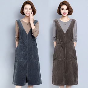 大码女装秋冬季日韩新款灯芯绒拼接毛衣显瘦时尚减龄法...
