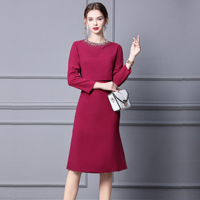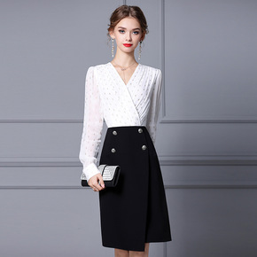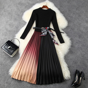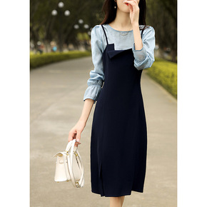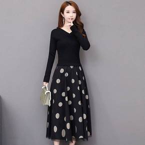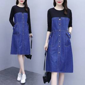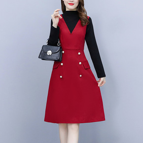 秋冬季时尚气质连衣裙加厚半高领纯棉拼接假两件洋气减...