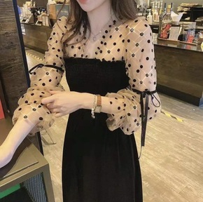 面料名称:金丝绒 主图来源:实拍有模特 货源类别:现货 风格:OL通勤 图案:圆点 工艺:印...