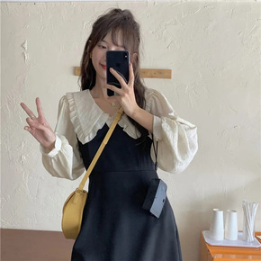 秋冬2021年新款韩版复古减龄娃娃领小个子百搭拼接...