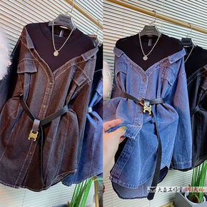 2022新款韩版大码女装胖mm时尚宽松打底假两件遮...