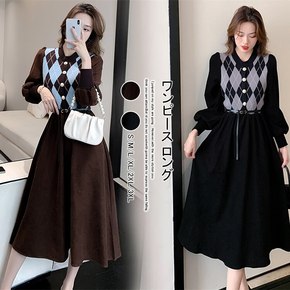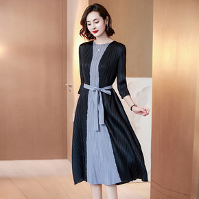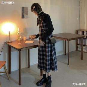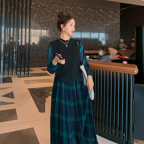 2020秋装新款格子拼接时尚收腰显瘦减龄遮肉长袖连...