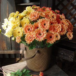 夏花 4头非洲菊花仿真花家居花餐桌花书桌绢花婚庆假...