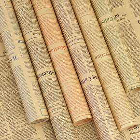 复古怀旧英文报纸牛皮纸礼品鲜花束包装纸干花包书红色...