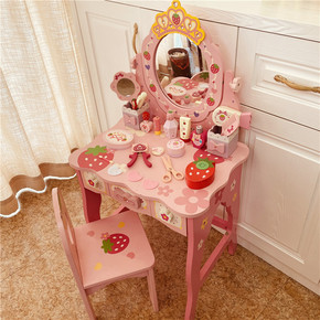 木制仿真化妆台兔子梳妆台女孩过家家儿童木质彩妆玩具...