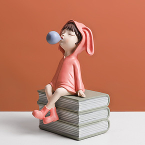 可爱泡泡嘴女孩仿真人物摆件书香女孩客厅创意装饰工艺...
