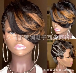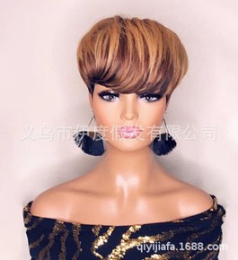 非洲假发 欧美假发女短卷发混色化纤头套 Pixie...