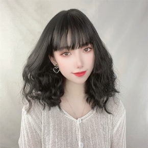 假发女蓝灰短卷发抖音网红空气刘海俏皮可爱蛋卷头自然...