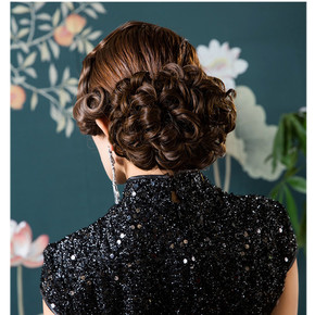 假发盘发拉花发包假发卷发包古装发髻唐龙哑光丝 夜上...