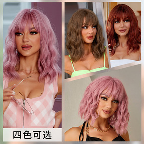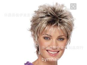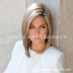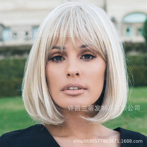 欧美假发 速卖通新款时尚外贸女短卷发混色斜刘海头套...
