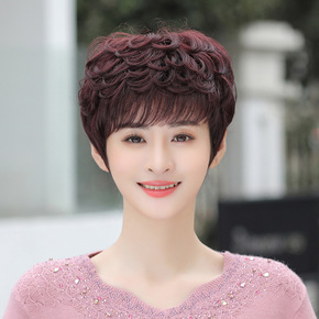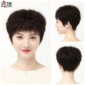 假发女短卷发玉米烫自然圆脸中老年妈妈女士真发假发头...