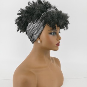 欧美外贸假发女士黑色T棕色化纤小卷发 黑色爆炸头小...