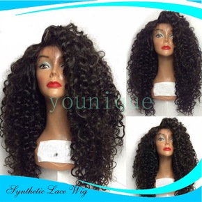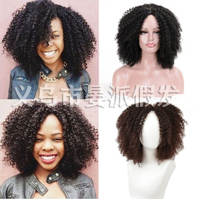 欧美中分短卷大波浪黑色假发蓬松短卷发化纤高温丝发型...