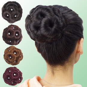 儿童假发丸子头女童跳舞芭蕾缠绕式盘发假发圈小花苞头...