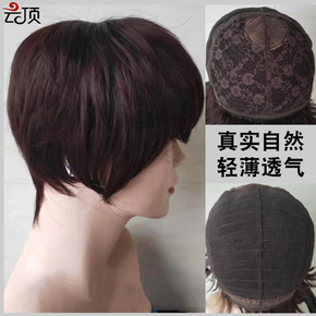 中老年妈妈假发片女头套真人发丝遮白发短卷补发块逼真...