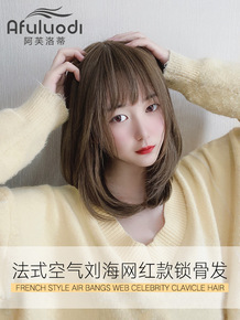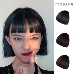 眉上刘海真发二次元假发片女网红空气自然真人发丝无痕...