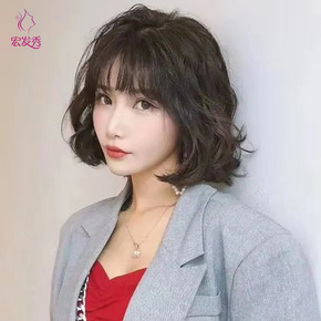 义乌假发女短发中长发网红假发帽子一体时尚女夏天时尚...