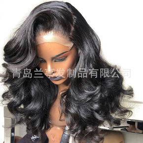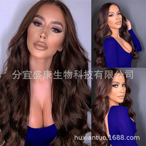 外贸供销款前蕾丝假发欧美时尚女士偏分长卷发大波浪假...