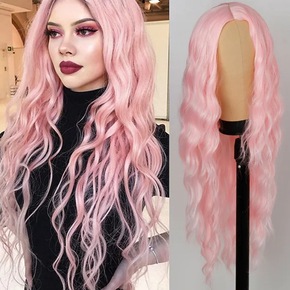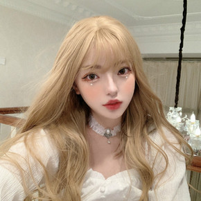 亚马逊新款金色大波浪假发女长发欧美风长卷发空气刘海...