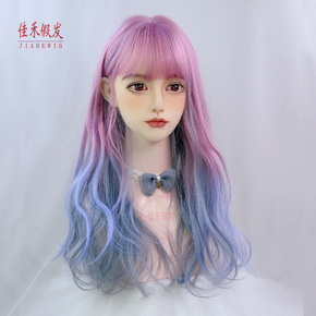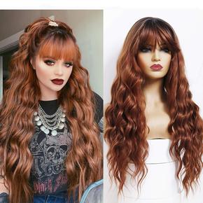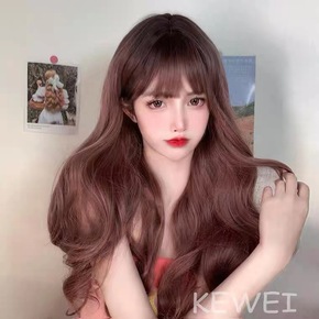 亚马逊新款假发女wigs时尚空气刘海日常自然大波浪...
