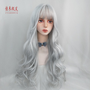 工厂批发欧美长卷发 网红自然银白大波浪假发 时尚逼...