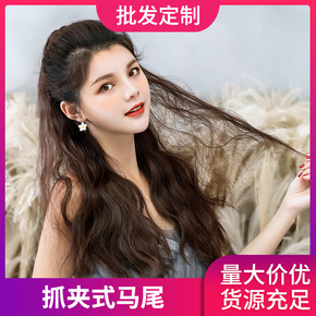 现货假发女抓夹绑带式假马尾长卷发大波浪梨花卷辫子源...