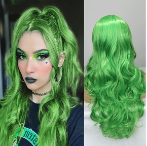 越纽贸易欧美假发女士绿色中长卷发 大波浪高温丝化纤...