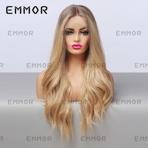 Emmor亚马逊欧美假发女士前蕾丝女士中分渐变金发...