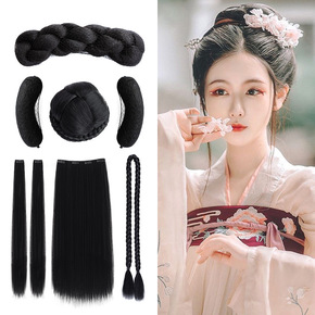 古风汉服假发包一体式长歌行发髻发饰女古装圆牛角麻花...