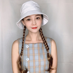 帽子假发可拆卸春夏一体三股编发辫双马尾可拆雏菊渔夫...