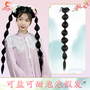 古风假发加长泡泡发拍照写真国风汉元素写真抓夹马尾辫...