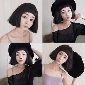 义乌厂家批发齐肩短发中长发圆脸直发短发造型修脸自然...