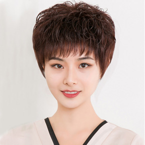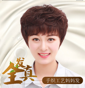 手织真发假发女短发短卷发真人发丝中年假发中老年妈妈...