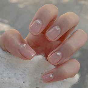 裸肤爱心线条法式穿戴甲美甲片假指甲贴片成品可拆卸反...