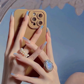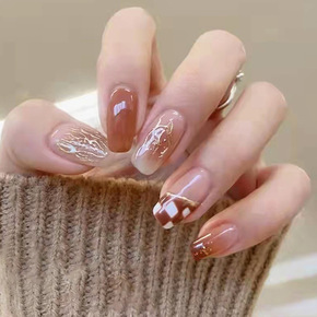 红棕琉璃棋盘格长款穿戴美甲片假指甲贴片成品可拆卸反...