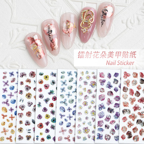 秋冬新款镭射款花朵美甲贴纸3D花瓣超闪贴花朵干花手...