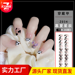 全贴假指甲贴片成品可拆卸反复用24片装黑斑马纹短款...