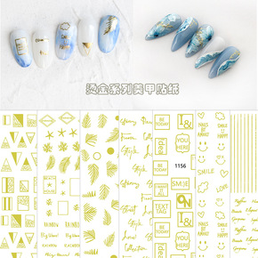 美甲贴纸金色系列大全英文字母贴花笑脸指甲贴片烫金系...