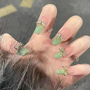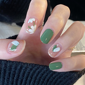 易戴易卸短款假指甲成品春夏网红新款穿戴甲绿色腮红爱...