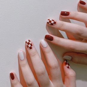 穿戴式指甲贴棋盘格穿戴甲甲片指甲片可拆卸 指甲贴片...