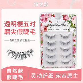 透明梗磨尖手勒款化纤假睫毛 日系裸妆自然 仿真交叉...