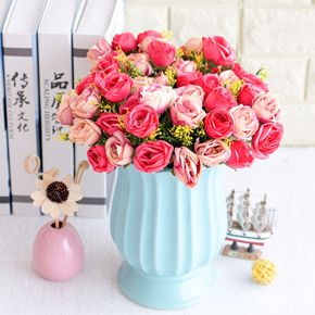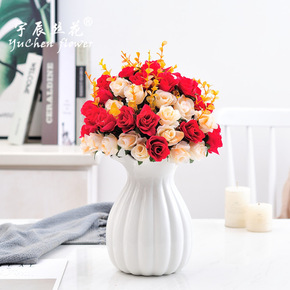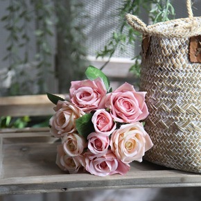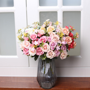 厂家直批 10头卷边玫 婚庆装饰假花 仿真玫瑰花仿...