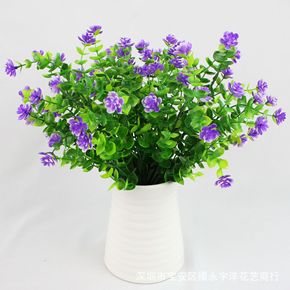 厂家供应仿真花假花塑料干花 尤加利玫瑰 绿色植物盆...