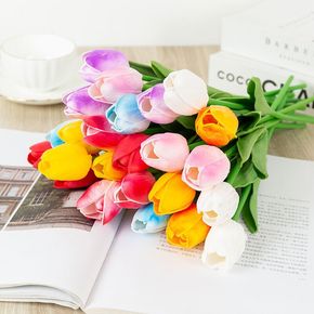 跨境PU迷你郁金香仿真花婚庆家居装饰假花摆件仿真植...