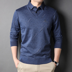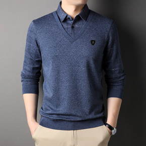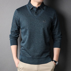 中年男士商务休闲衬衫领假两件上衣2022秋冬季新款...