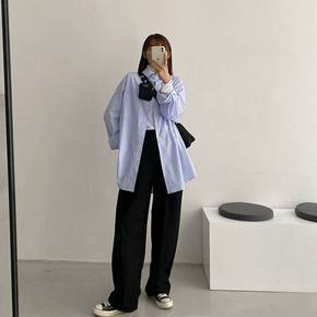 2022新秋季上衣女长袖衬衫女学生韩版宽松庸懶风百...