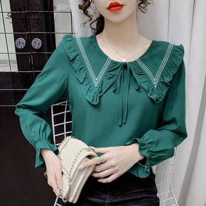 2022秋装韩版新款百搭设计感小众心机衬衣上衣领长...
