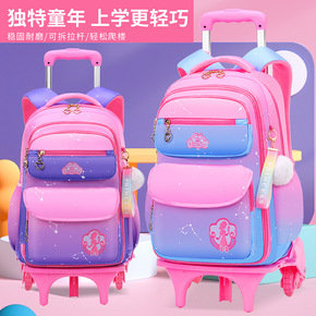 新款儿童拉杆书包小学生女童2021渐变韩版冰箱开门...