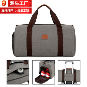 跨境圆筒健身包帆布旅行袋时尚耐磨户外男士多功能收纳...